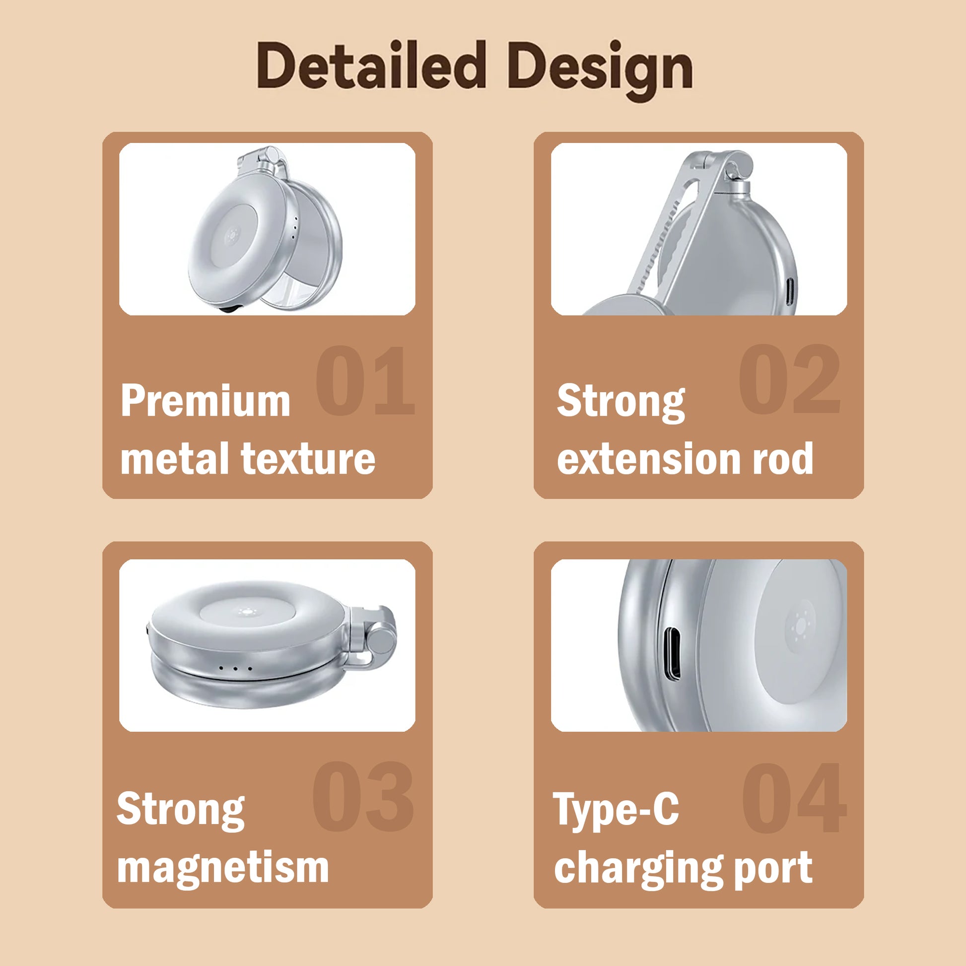 The Magnetic Smartphone Fill Light uses a powerful snap-on magnetic mount to instantly attach to your phone or case. Once connected, its ultra-bright LEDs illuminate your face with soft, adjustable lighting—perfect for selfies, video calls, or content creation in any setting.