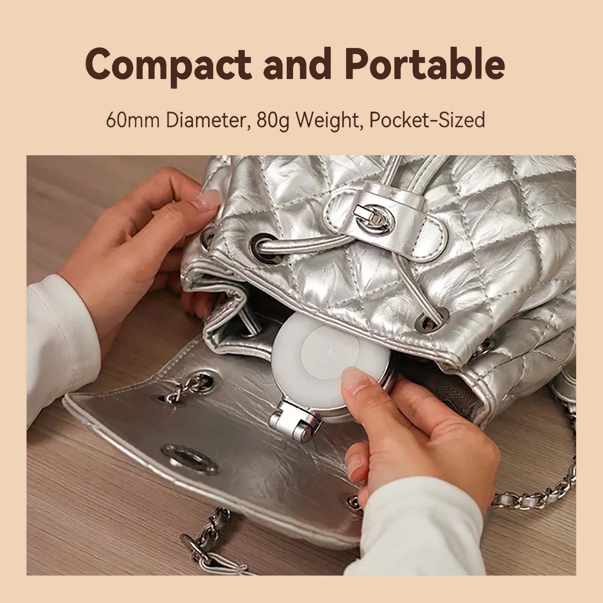 SnapLight Pro is compact, lightweight, and built for portability. It weighs approximately 80 grams and has a sleek 60mm diameter, making it easy to slip into your pocket or bag.