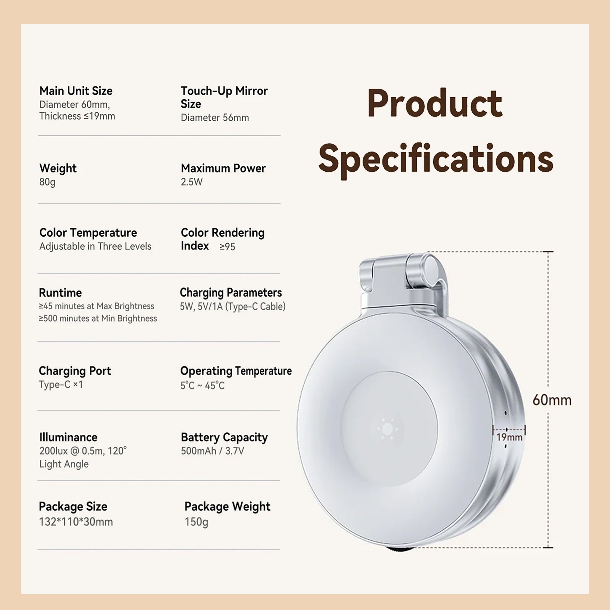 The built-in 500mAh battery provides up to 45 minutes of continuous bright light on a full charge—ideal for short shoots, calls, or content creation sessions.